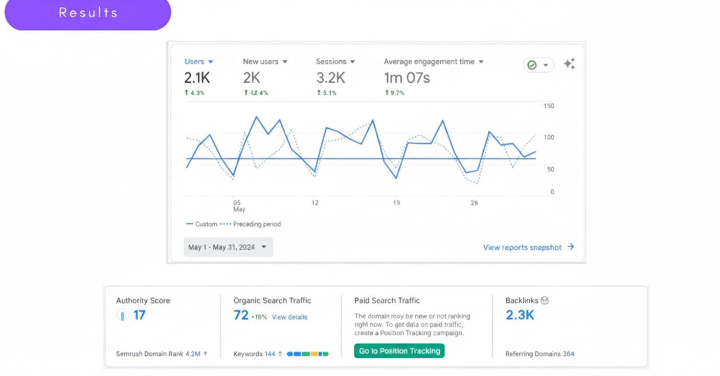 They provided a clear SEO plan and delivered exactly what was promised. Our rankings improved across several competitive keywords and traffic has doubled within a few months.